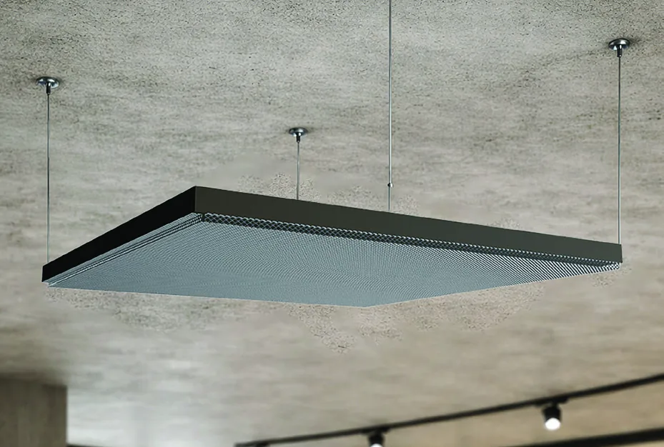 WINAL Urban C — потолочная металлическая акустическая панель со скрытой подвесной системой. Монолитное визуальное полотно без видимого крепежа.